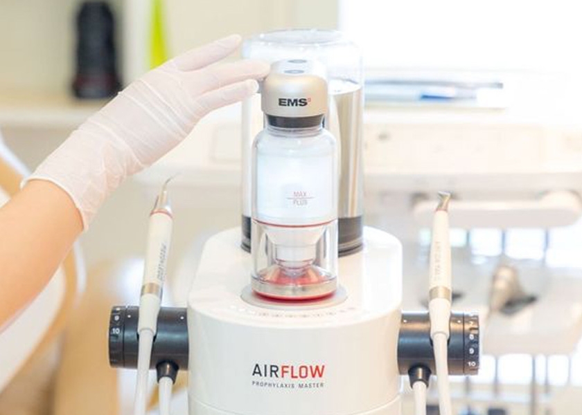 きめ細やかなパウダー粒子をジェット噴射で歯に吹き付け、歯にこびりついた汚れを除去し、ツルツルに仕上げます。