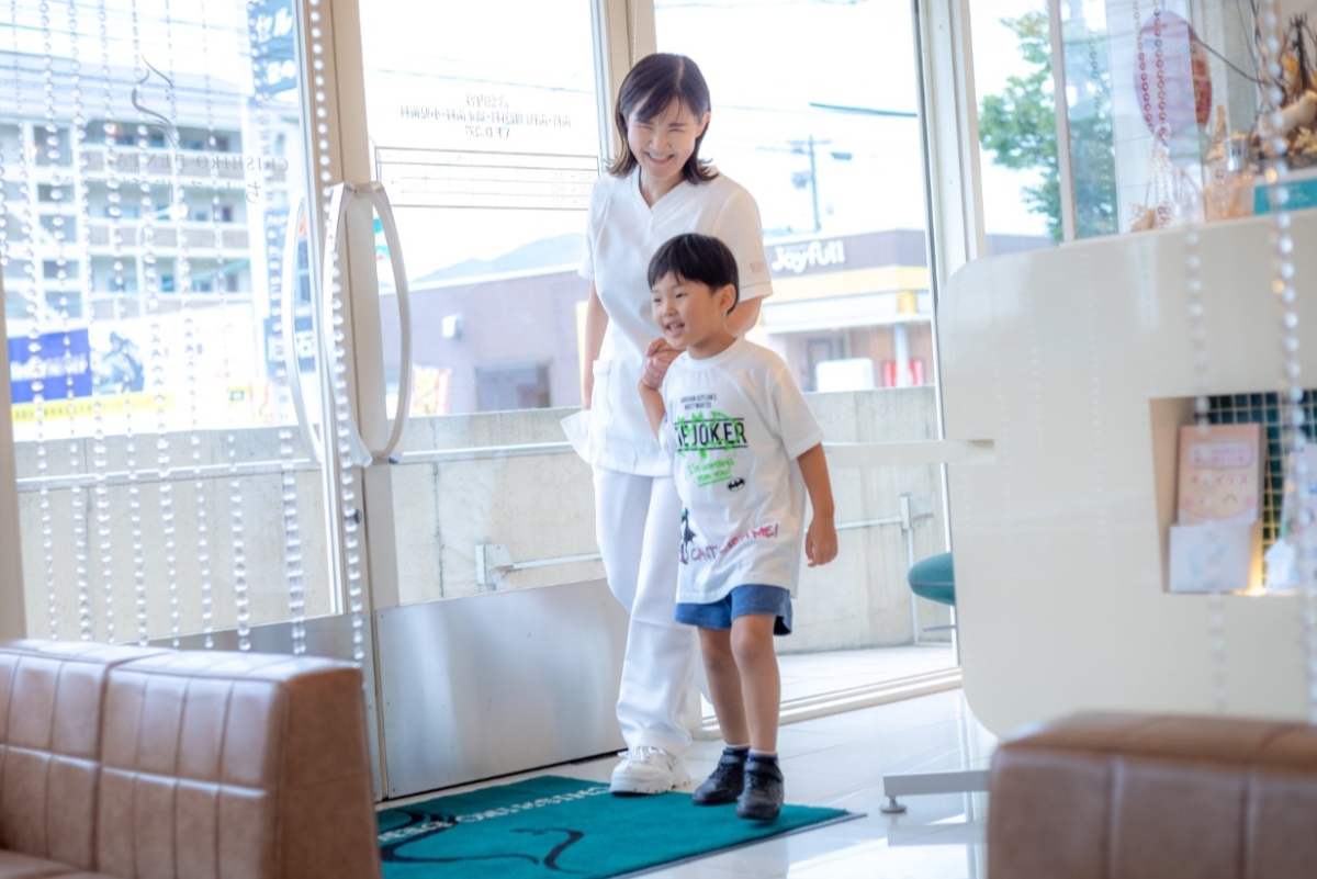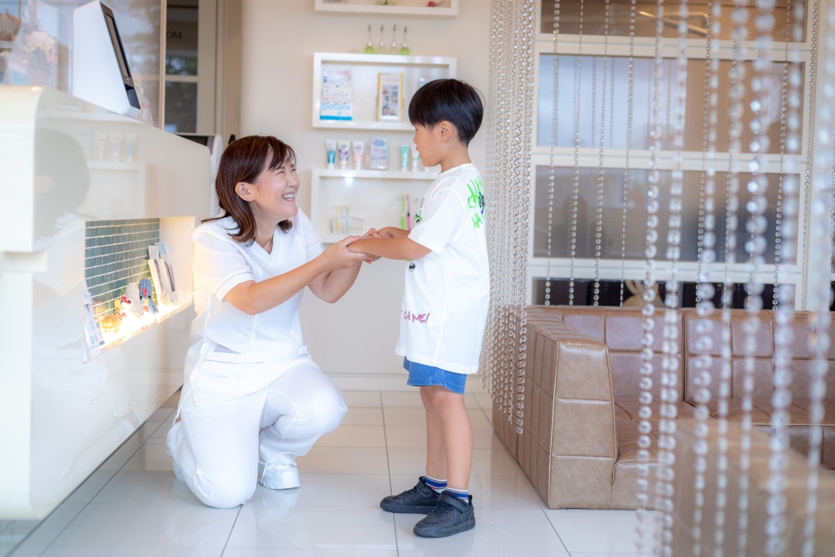 まずじっくりお子様と会話をして、歯医者さんに慣れてもらうことが当院の基本方針です。幼いころに受けた治療が、その子にとっての「歯医者」のイメージとして残ります。「歯医者は怖くない」もっと言えば、「予防のために通う」という感覚が身につくと、生涯、自分の歯を守っていっていただくことができるはずです。