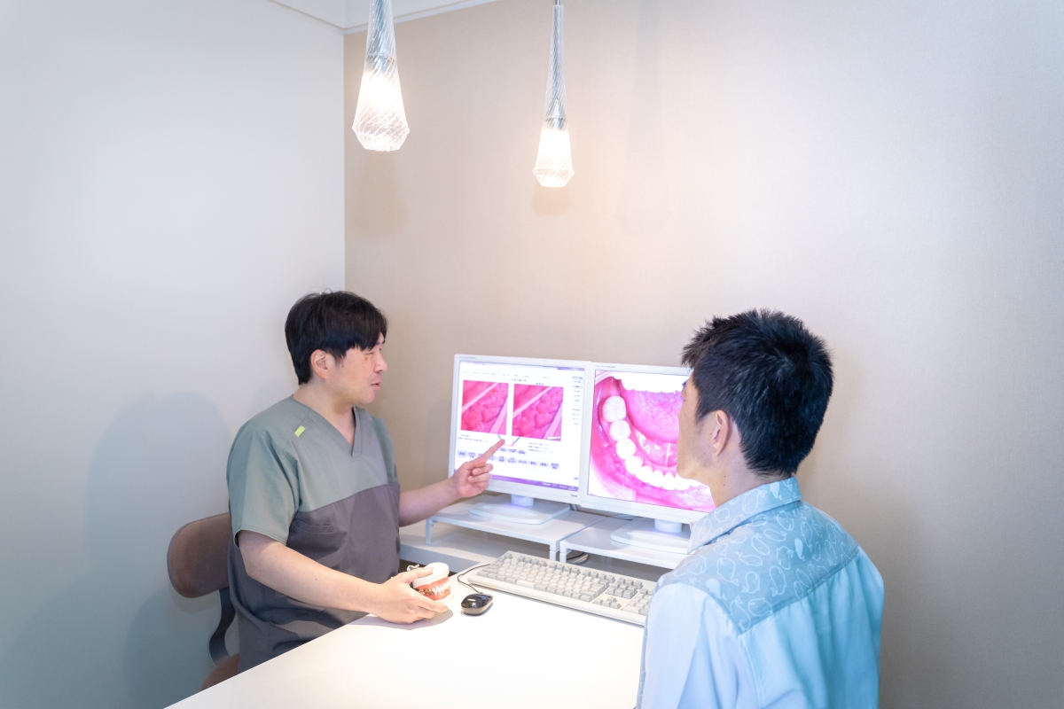 現在のお口の状態について、検査結果の数値を元にご説明し、治療計画をご案内します。
